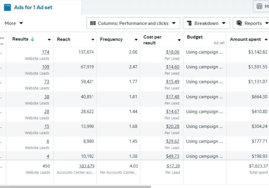 3,000+ leads generated for this business with Google ads over 1.5 years. $15 average CPL.